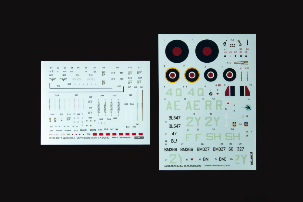 Stavebnice britského stíhacího letounu Spitfire Mk.Vb v měřítku 1/48; edice Weekend. Ze stavebnice je možnost postavit si Spitfire Mk.Vb použit během Operace Overlord.